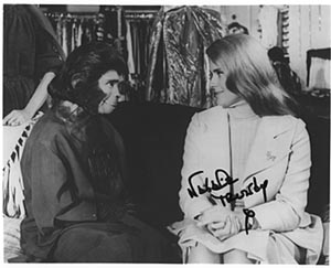 Apes. rare photo of Natalie in costume kissing director/husband Arthur Jacobs (Arthur was the producer of all five of the Apes movies) Signed by Natalie Trundy with C.O.A. $25.00 |